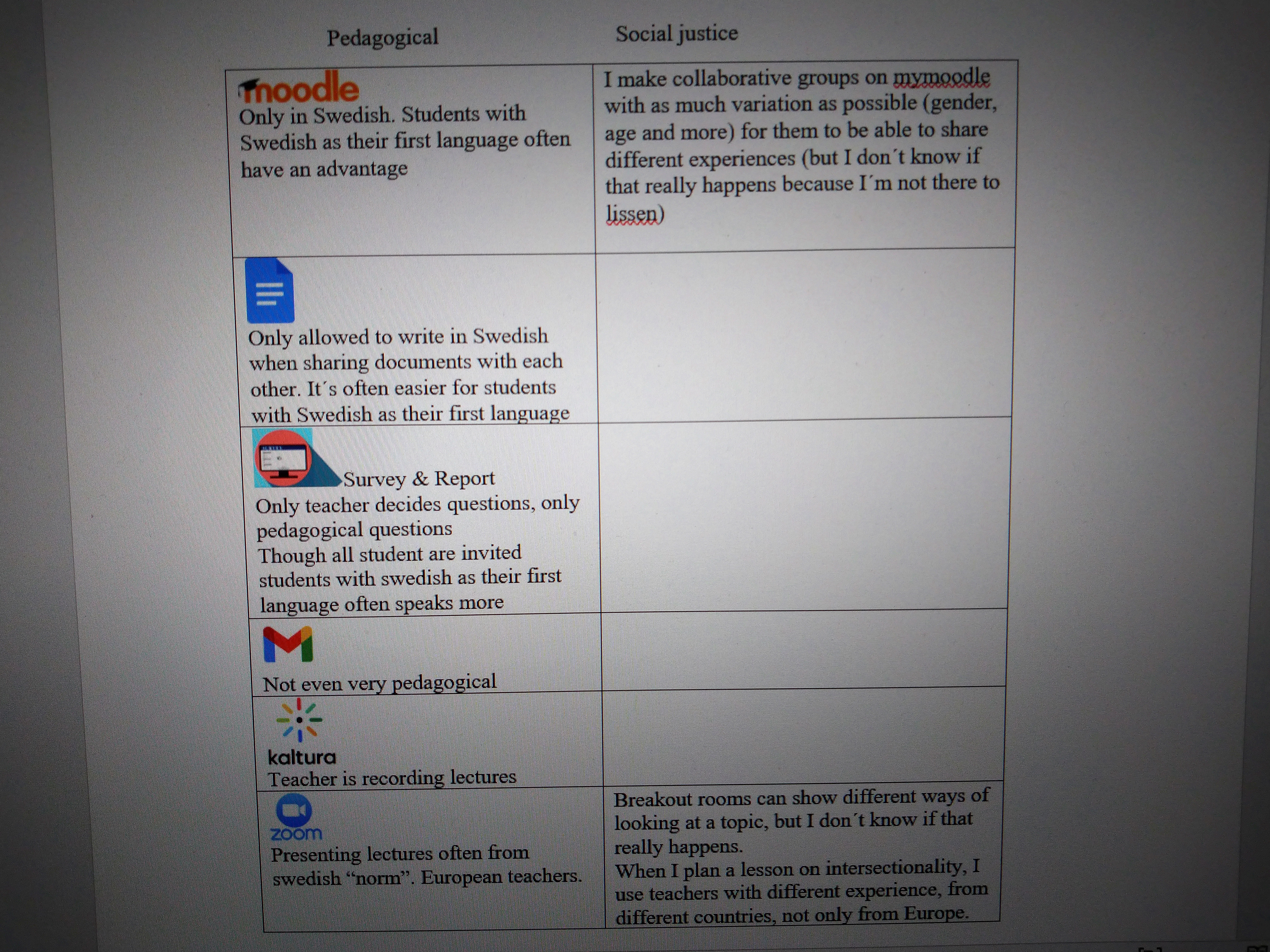 Need to address more process-centric, student-centric and social justice in my work. Publicerat avannatheteachingnurse25 mars, 2021Publicerad iOkategoriserade Inspired by Maha Balis lecture as well as Bali & Jhangjani (2020). Dela detta: Dela på X (Öppnas i ett nytt fönster) X Dela på Facebook (Öppnas i ett nytt fönster) Facebook Gilla Laddar in … Relaterade